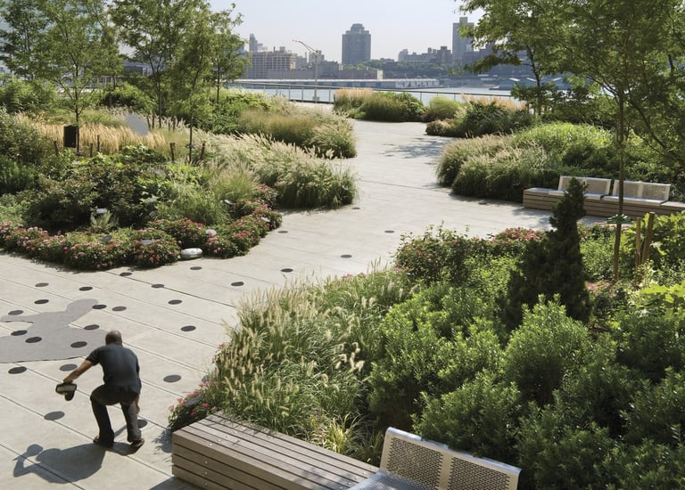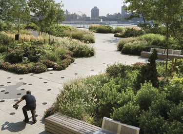 The Elevated Acre, transforms a previously forgotten elevated deck at 55 Water Street into a vibrant, accessible public space.