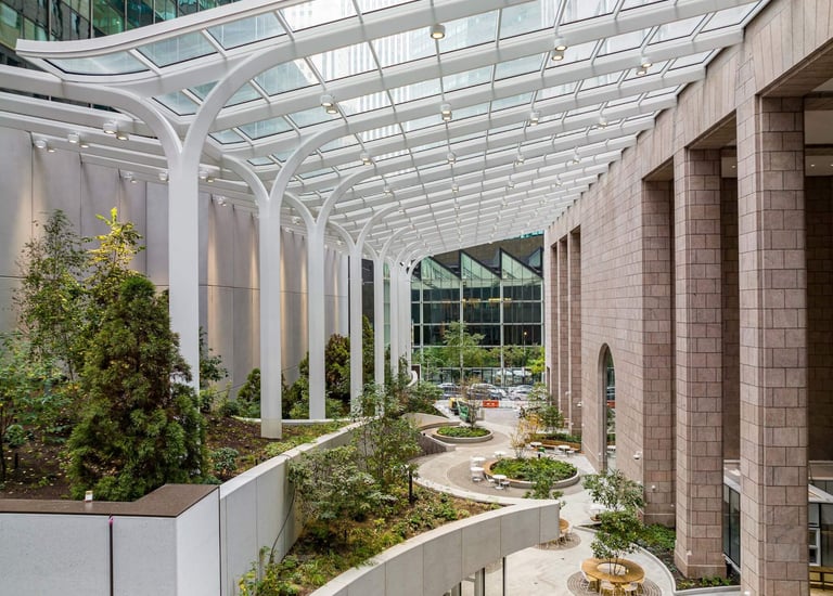 590 Madison Avenue has indoor connected privately owned public spaces uninterrupted by a street.
