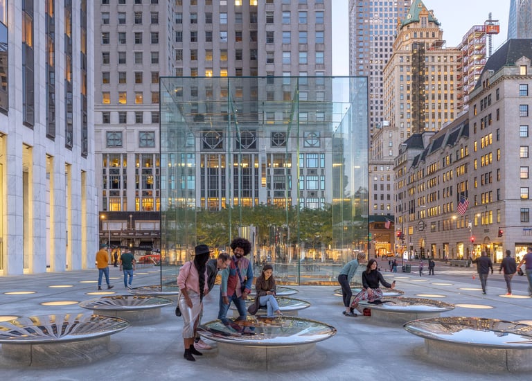 Apple POPS is on Fifth Avenue between 58th and 59th streets, across from the Plaza Hotel.